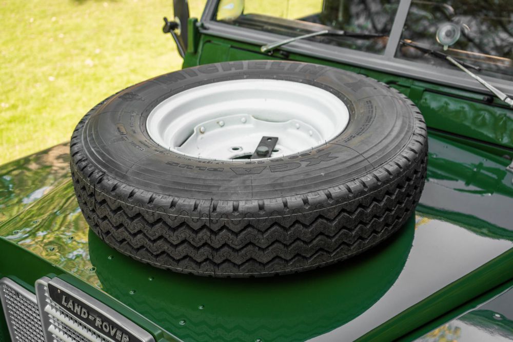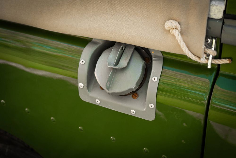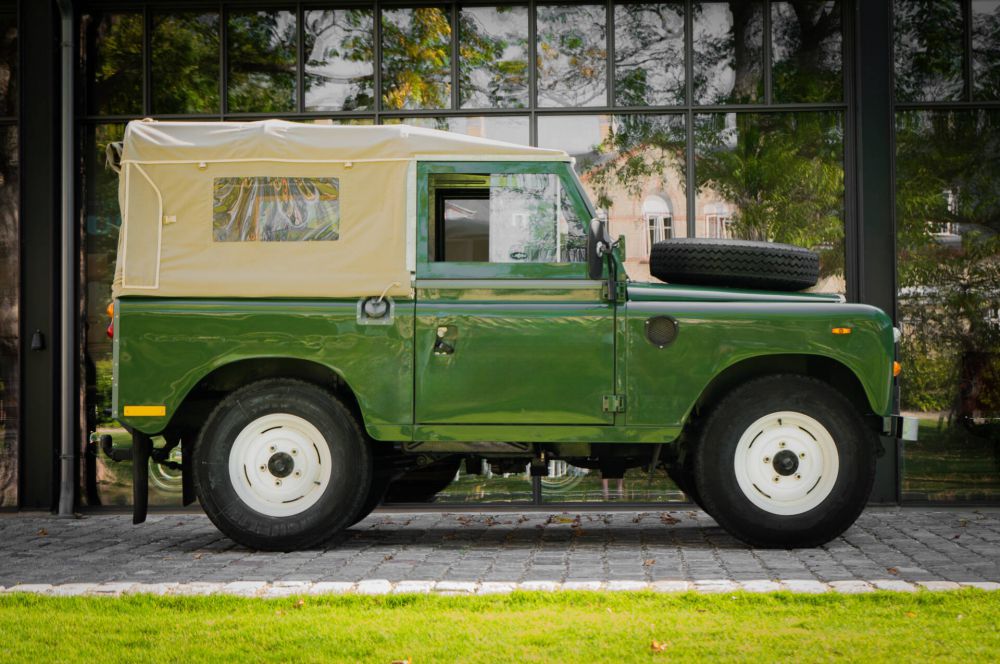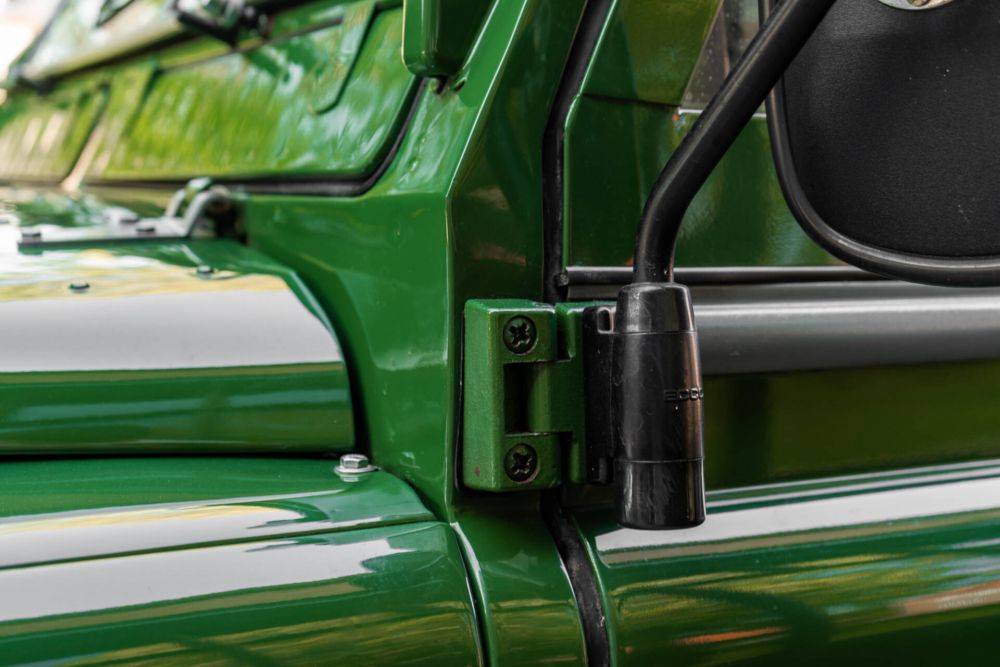 This Land Rover was completely disassembled and then reassembled, with approximately 95% of its components either replaced or restored to original specifications. Hundreds of new parts were installed, including brand-new doors, windows, wheels, brakes, hoses, wiring, hinges, locks, and bolts. The frame has been treated with a Waxoyl coating and painted with black anti-corrosion paint, ensuring long-lasting protection and preserving its authentic appearance. A new Exmoor Soft Top enhances the vehicle’s aesthetics, while new Michelin XCA Plus 750/R16 wheels add to its commanding road presence.