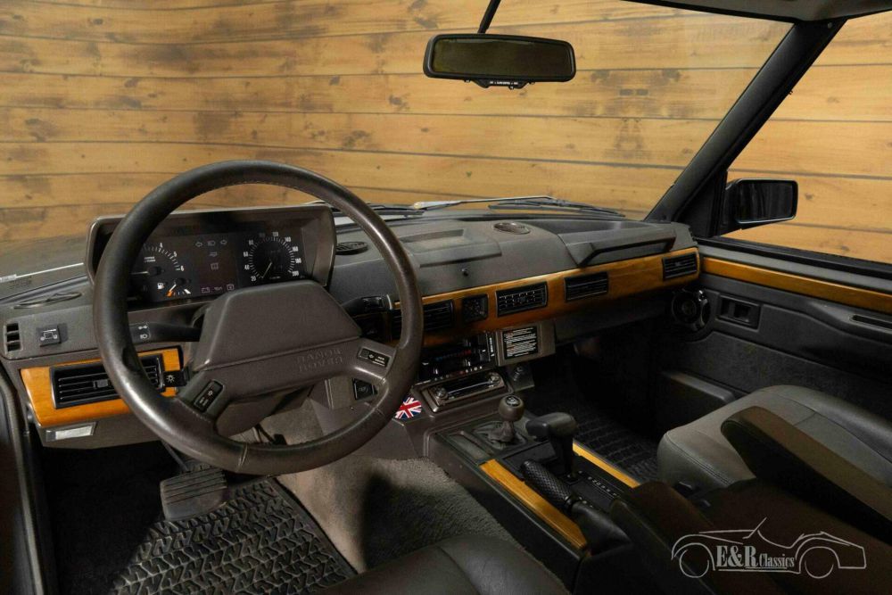The classic Range Rover Vogue that we offer for sale here is truly a sight to behold. During the restoration, the sheet metal and chassis were welded and replaced where necessary. It has a beautiful dark grey metallic paint and sits on a set of alloy wheels with recently renewed all-terrain tires. The dark grey leather interior is in neat, original condition and only has some minor signs of wear here and there. The Range Rover is also equipped with electric windows, air conditioning and cruise control.