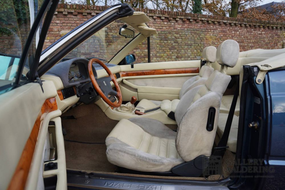 After Maserati came with the Biturbo in 1981, it would only be a matter of time before the Italian manufacturer offered us an open version. Zagato was given the go-ahead to design and build the roofless Biturbo and in 1984 Maserati was able to proudly present the Spyder. Over the years small modifications were made before a larger one in 1989 in line with saloon Biturbos. The bumpers became integrated, the grill rounded and the engine size increased to 2.8 litre. Water-cooled turbo’s and intercoolers made their entrance improving the six-cylinder’s reliability.
