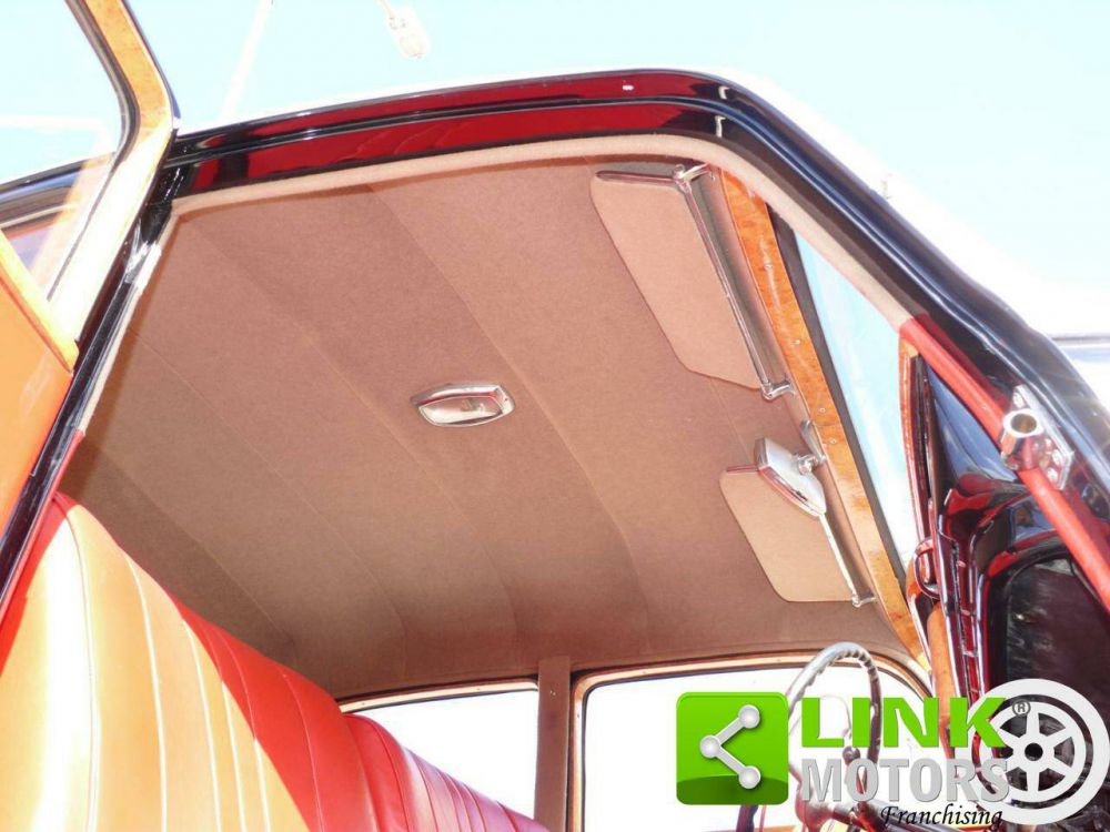 Carrozzeria in buonissime condizioni, scocca e pianale nessuna traccia di corrosione. Vernice bicolore nera lucida con tetto a contrasto color argento metallizzato. Paraurti, maniglie, profili e parti cromate ancora ben lucide, migliorabili tramite lucidatura professionale. Ruote in lamiera di acciaio da 16, finitura color argento e nero in tinta carrozzeria con coppa cromata, pneumatici Pirelli con disegno dell'epoca, battistrada al 85%. Interni completamente originali. Selleria e pannelli porta in pelle rossa. Plancia in radica di noce, strumentazione completa e funzionante, volante in bachelite color nero, perfette condizioni di conservazione. Meccanica funzionante ed efficiente. Disponibile per visita e prova SOLO su appuntamento chiamando il numero +39.371.3026076 anche WhatsApp. Targhe e documenti in regola per passaggio di proprieta o Export. Possibilita di finanziamento personalizzato anche senza anticipo da 12 a 84 mesi. Possibilita di trasporto in Italia o Europa o Estero. Disponibili altre info, foto e video a richiesta.