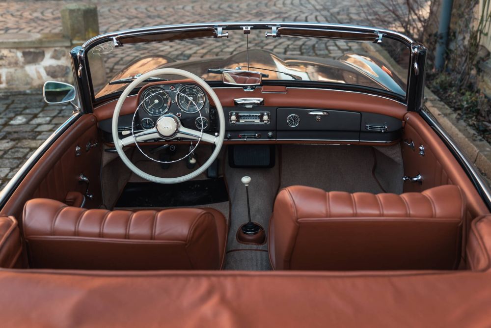 Der Mercedes 190 SL stand lange Zeit im Schatten des legendären großen Bruders 300 SL, welcher bereits seit Jahrzehnten 7-stellige Preise beim Wechsel des Besitzers erzielt. Der 190 SL basierte technisch auf dem Ponton-Modell (W121) und war somit eher ein Touren-Sportwagen. Mit den weiter steigenden Marktpreisen der 300 SL erfreuten sich auch gute Exemplare des kleinen Bruders in den letzten Jahren an höherer Wertschätzung unter Liebhabern und somit auch einer entsprechenden Wertsteigerung. Dieser SL wurde 2017 vollständig restauriert und befindet sich seitdem in einem makellosen Zustand. Der Wagen hat Matching Numbers, das original Becker Mexico Radio und die zugehörige mechanische Kienzle Uhr. Bei der Restaurierung wurde für die Karosserie der Farbton Anthrazit DB190 und für das Interieur Leder in Cognac, sowie Teppiche in Wollbouclee gewählt. Zum Fahrzeug gehören außerdem jeweils ein zweiter Satz Teppiche und Sonnenblenden, ein ebenfalls restauriertes Hardtop, ein Wertgutachten (Note 1, 2017) und diverse originale Prospekte und Dokumente. Mit diesem 190 SL bieten wir Ihnen einen der schönsten deutschen Klassiker in einem unvergleichbaren Zustand, geeignet für gelegentliche Ausfahrten, aber auch Urlaubsreisen in sonnige Gebiete. Das Arnold Classic Team freut sich auf Ihre Anfrage!