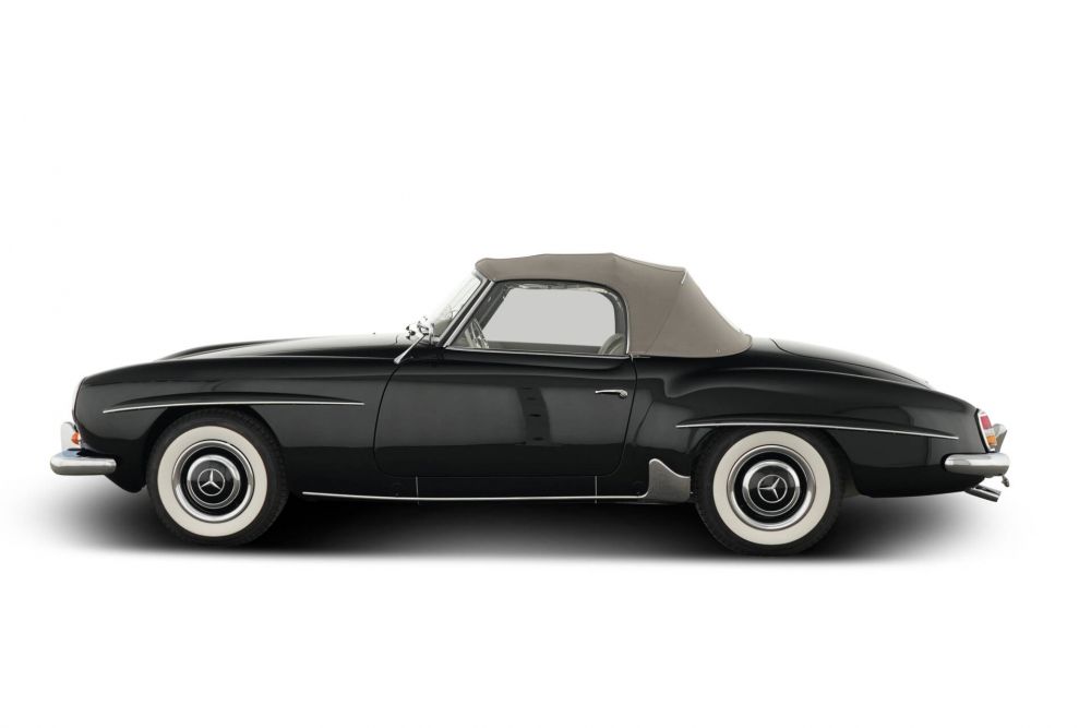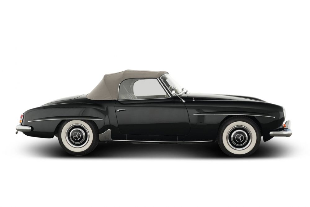 - Fahrgestellnummer: 121040-10-024311 - Farbe: DB-040 Schwarz - Polsterung: Hellgraues Leder - Verdeck: Grau aus Sonnenlandstoff - Teppich: Grau - Reifen: 6.40/7.00 R13 87S TL Michelin ZX mit 60 mm Weißwand - Extras: Passendes 3-teiliges Leder-Kofferset und Radio Becker Europa