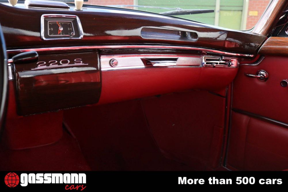 Bei seiner Vorstellung im Jahr 1956 war die 220 S Limousine eines von drei neuen Modellen mit einer selbstragenden Ganzstahl-Karosserie, aufbauend auf einem Kastenprofil-Rahmen mit seitlichen Längsträgern. Die beiden anderen Modelle waren der 190 und 219. An allen vier Rädern dämpfen Schraubenfedern das unabhängige Fahrwerk. Alle weiteren Neuvorstellungen von Mercedes-Benz profitierten dann auch von der Eingelenk-Pendelachse an der Hinterachse. Die 220 S Cabriolet und Coupé Versionen mit dem verkürzten Radstand folgten danach in kurzem Abstand im Oktober desselben Jahres. Angetrieben wurde der 220 S von einem Reihensechszylinder mit 2,195 ccm Hubraum und obenliegender Nockenwelle, der anfangs 100 PS und ab 1957 106 PS leisten sollte. Während des gesamten Produktionszeitraums bis Oktober 1959 wurden nur 3,429 Cabriolets und Coupés des 220 S hergestellt. Heute sind diese eleganten und luxuriös ausgestatteten Reisewagen sehr begehrt.