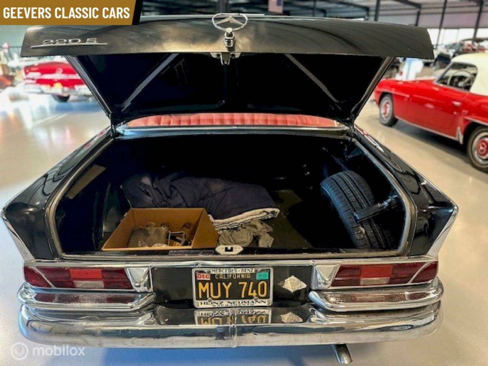 - Merk: Mercedes - Model: 220S - Tellerstand: 1 KM - Carrosserievorm: Sedan - Aantal deuren: 4 - Brandstofsoort: Benzine - Bouwjaar: 1963 - Transmissie: Automaat - Kleur: zwart - Kleur interieur: rood - BTW/Marge: Marge, de BTW is niet aftrekbaar