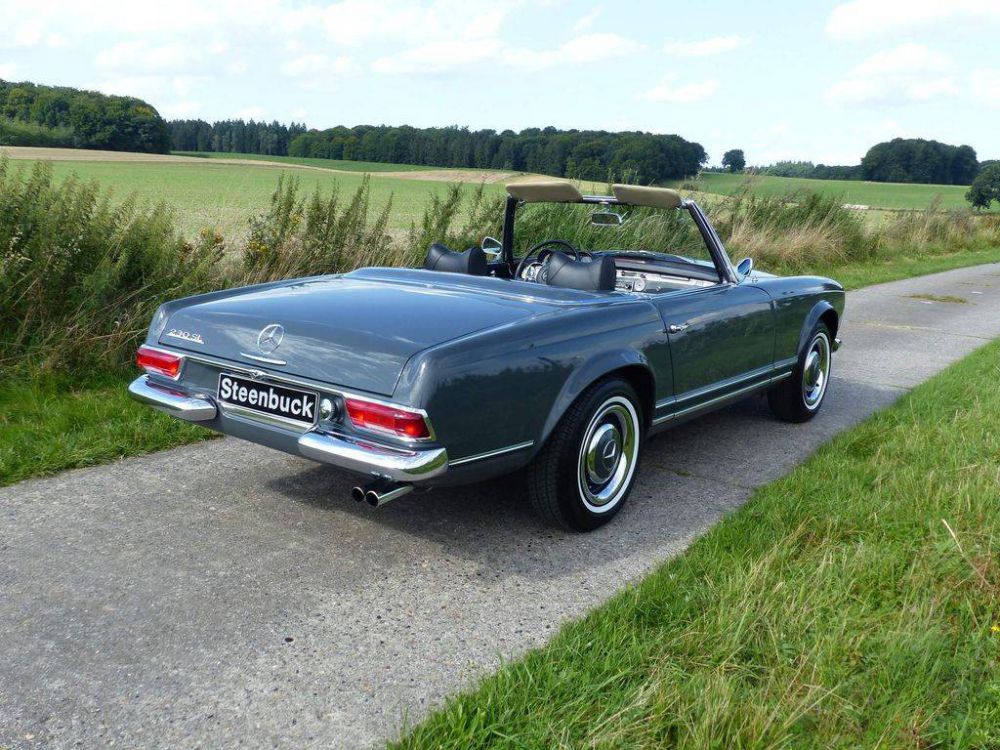 February 1963 was the end of production for the two classics 300 SL and 190 SL. The new 230 SL (W 113 series) was the successor. A modern body and a snarky six-cylinder engine made it a hit as a replacement for the 190 SL. The legendary 300 SL remained without successor. The racing and rally driver Eugen Böhringer earned the new roadster respect with his successes on the 230 SL. Our Mercedes-Benz 230 SL Roadster is the sportiest version of the W 113 series. During the restoration, the classic car was given a new paint job, a replacement engine and a replacement gearbox, both of which are of course original Mercedes-Benz units. This 230 SL has enormous charisma.