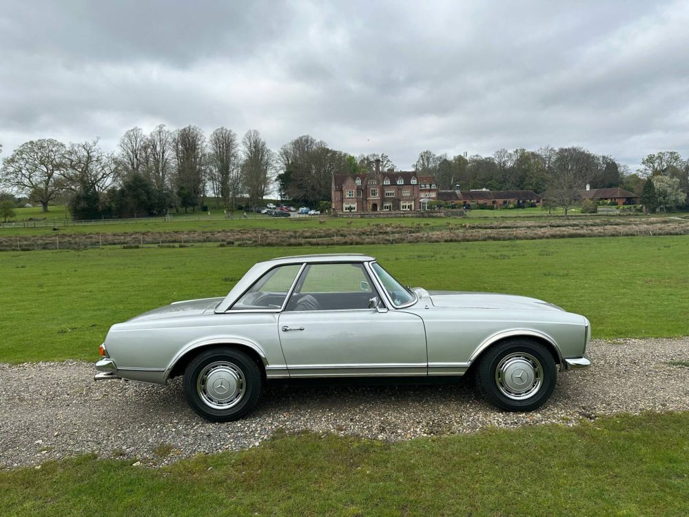1970 Mercedes 280SL Pagoda Automatic. Finished in silver with black leather and wood interior, this Pagoda is in an excellent condition throughout. 96,727 miles from new with service history dating back to 1984. Within the history file, there is lots of previous MOTs, previous adverts, services, tax discs and more. The current owner has owned the car since 2012, and has spent more than £16,000 on it. Amongst this expenditure includes work such as new insulation throughout, new brake callipers, new rear springs and rubber mountings, new mouldings all round, new weatherstrip and seals. Other work includes new relays, switch cylinder, new injection nozzles and new fuel lines. The interior has also had a complete overhaul including new wood on the dashboard, new speaker grilles, soft top frame bolts, new moulding set, new carpets, new radio and more. The car has been well looked after by Roger Edwards, who is a well known Pagoda specialist. The car presented here drives faultlessly and goes through the gears perfectly. £129,995 any inspection welcome and delivery available.