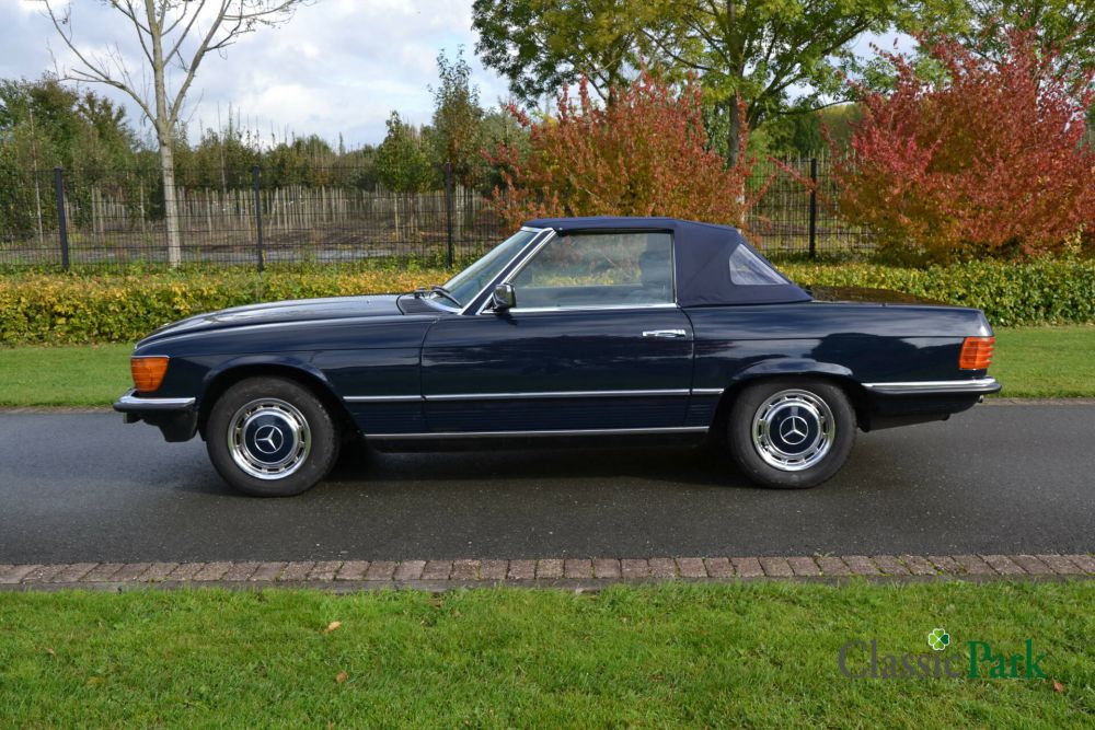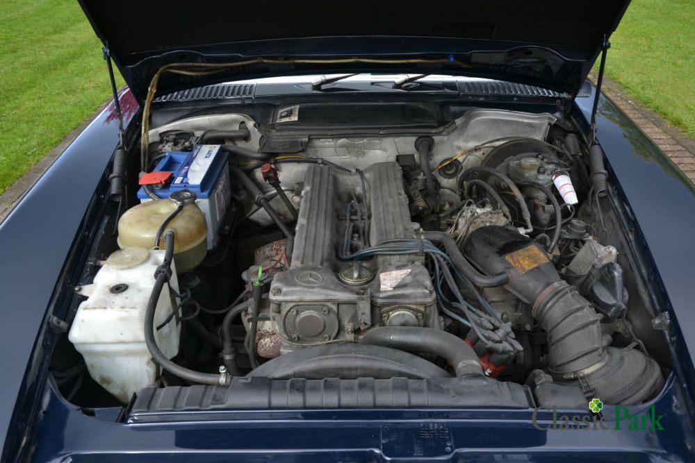The interior is equipped with genuine leather that has hardly any signs of wear. The wood veneer panels are also like new. The car is equipped with electric windows and mirrors. Furthermore, this SL was delivered new with a Becker Mexico cassette radio, automatic antenna, heated seats and headlight wipers. The originally German car has demonstrably only had three owners. The original folder with the manual and a maintenance booklet that has been fully updated to this day are pre-sent with the car. A folder with many invoices and historical data is also included.
