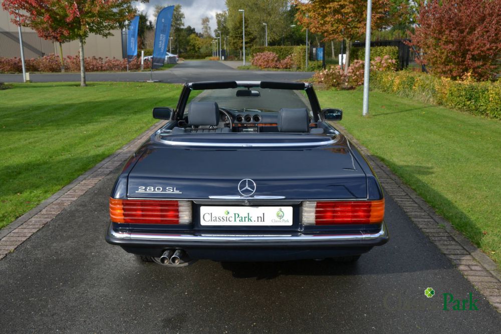 This Mercedes-Benz 280 SL is fully finished in matching dark blue colors (Dunkel Blau 904), both in terms of paint and interior. The manually operated soft top is also finished in dark blue and is in very good condition. The original hardtop is present separately with the car. Under the hood is a 2746 cc six-cylinder in-line engine with a four-speed automatic gearbox.