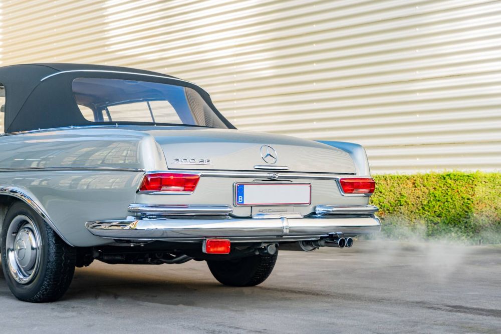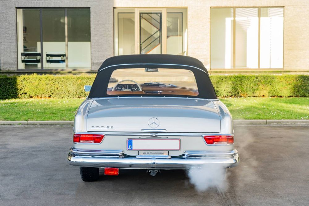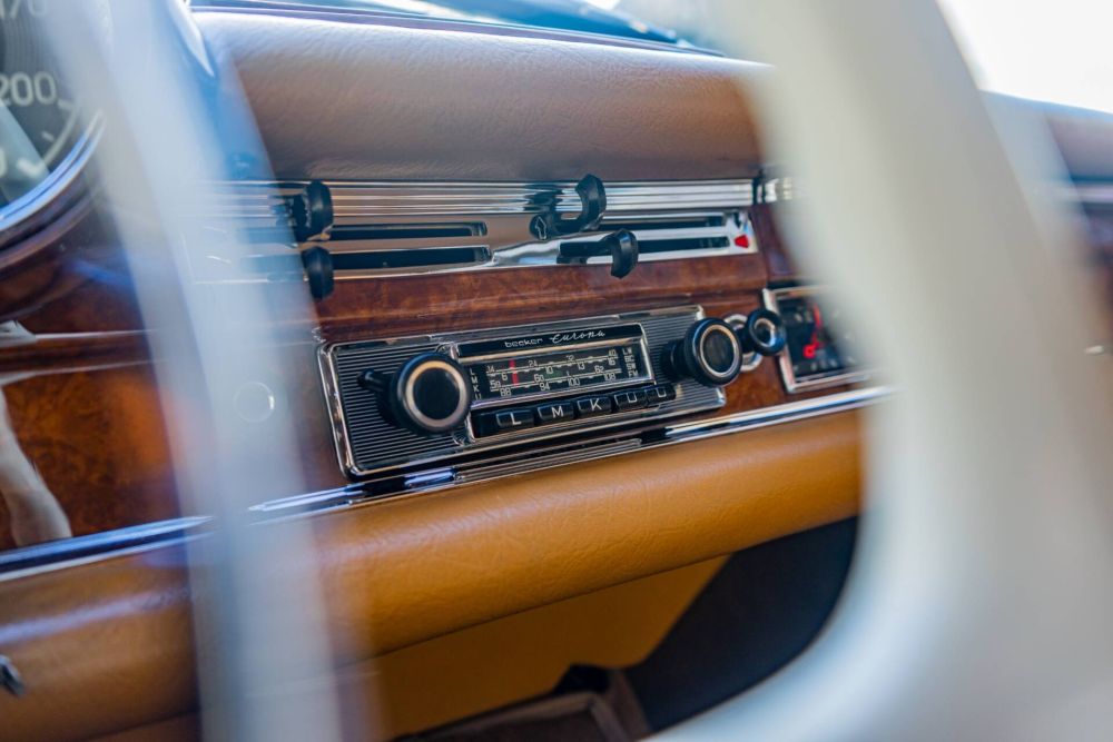 One of 708 built from 1962 through 1967, this elegant 1966 300SE cabriolet is one produced with the M189.984 alloy block. About a decade ago, the vehicle suffered minor cosmetic damage caused by a product in an underground garage. This led to a meticulous full repaint, ensuring the car retained its original elegance without compromising its authenticity—remarkably, not a single body panel was welded or replaced, even the infamous front inner fender reinforcement remains untouched. Every detail of the restoration reflects the utmost care: all chrome elements have been redone to perfection, a brand-new convertible top was fitted, and a new windscreen installed to enhance its aesthetic and functionality.
