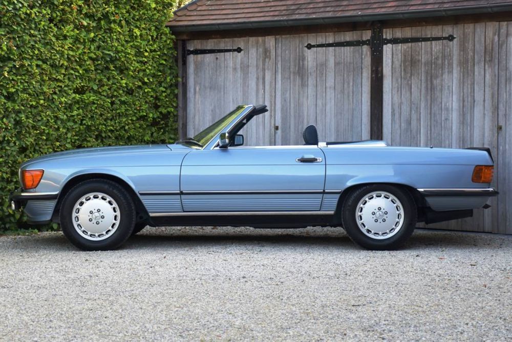 The Mercedes 560 SL was the top-of-the-range model of the R107 series. This model was in production from 1971 until 1989, and then replaced by the R129 after a very successful career. The 560 SL was introduced in 1986 and was only available on the American, Japanese and Australian market. The US versions had restricted performance, huge bumpers and a third brakelight, while the Japanese and Australian examples were built to European specification (LHD for Japan, RHD for Australia).
