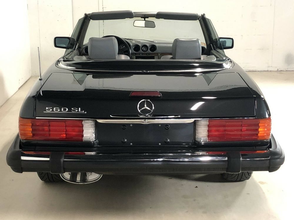 The R107 received its first update in 1985 with a deeper front air dam, a revised brake system with larger discs and four-piston calipers, a driver's side airbag (standard for the U.S. market and an extra-cost option for the European market), and, for the European market, a catalytic converter option. The 5 mph bumpers and the four round, mounted headlamps on the U.S. models remained unchanged despite revised U.S. FMVSS regulations that allowed 4.5 mph bumpers and close-fitting headlamps beginning with the 1982 and 1983 model years, respectively. The U.S. model received the third brake light, mounted on the trunk, in 1986. The 560 SL was only sold in the United States, Canada, Japan and Australia.