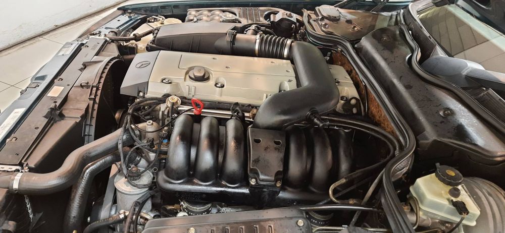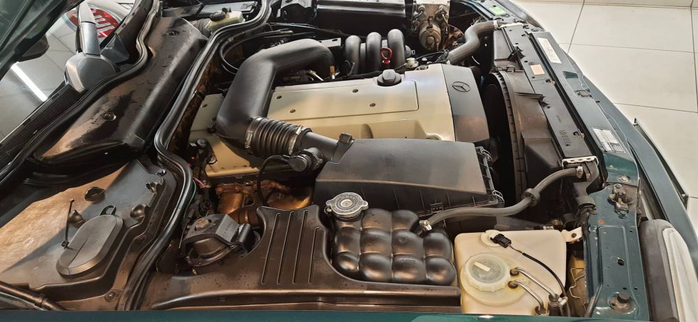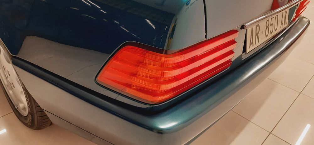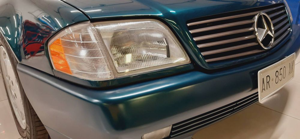 La SL R129 è considerata tutt'oggi da molti, la migliore tra le serie di SL prodotte finora. La linea, disegnata da Bruno Sacco, è abbinata ad una meccanica molto sofisticata, caratterizzata da un ampio uso di elettronica e da sistemi di sicurezza evoluti. Tra le innovazioni il roll-bar ad azionamento automatico, che fuoriesce in una frazione di secondo in caso di ribaltamento, e la capote ad azionamento elettroidraulico, che scompare in un apposito vano posteriore. Sempre per quanto riguarda la sicurezza l'antipattinamento ASR (dotato di una gestione comune con l'impianto ABS) che agisce in prima battuta frenando leggermente la ruota pattinante ed in seconda battuta tagliando l'erogazione di potenza del motore. Sono da ricordare anche i sedili con struttura in magnesio, dotati tra l'altro anche di cinture di sicurezza con avvolgitore integrato nel corpo del sedile. La vettura proposta in uno splendido verde turchese è stata prodotta nel luglio 1994 (facente quindi parte della seconda serie) ed è stata immatricolata a Norimberga, dove è rimasta fino a fine 1996, come documentato dal tagliando eseguito a 23836 km. E’poi stata importata a San Marino e poi nell’agosto 1997 importata in Italia a Coriano (RN). La vettura, prossima ai 30 anni è oggi ancora in ottime condizioni, dotata del suo hard top originale.  Abbiamo eseguito il tagliando con controllo generale nella nostra officina, revisione periodica assolta fino ad aprile 2024.  La motorizzazione 3199 da 231 Cv con motore 6 cilindri, abbinato al cambio automatico, rende la guida piacevole e fluida. Una vettura destinata ad essere un punto di riferimento nel futuro delle storiche, da utilizzare volentieri con un occhio non solo al cuore ma anche come investimento per il futuro.
