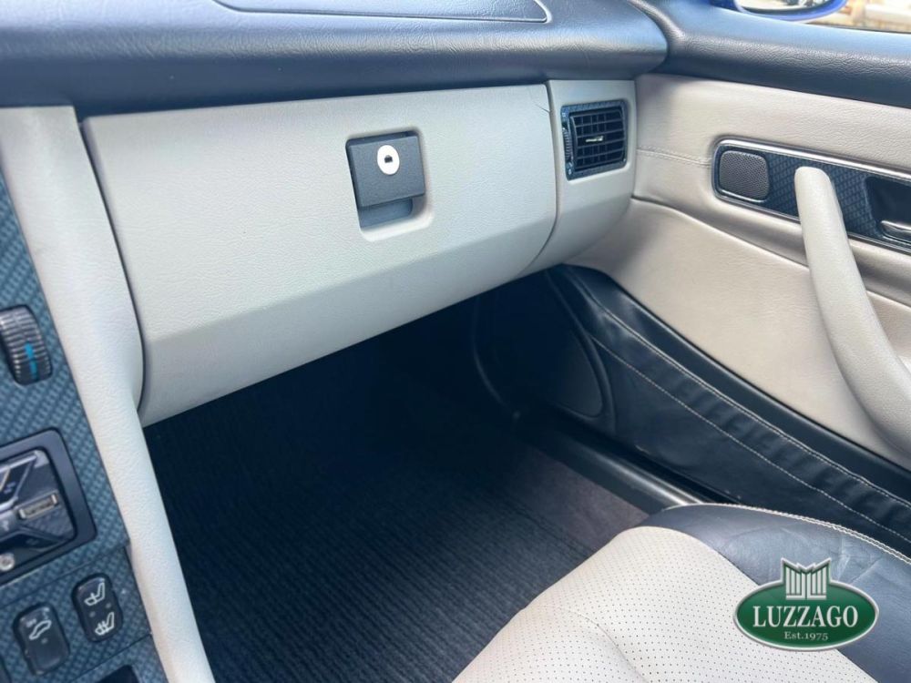 Mercedes SLK 200 Kompressor automatic prima serie del 1997 modello raro con il cambio automatico per il mercato italiano. Combinazione colore esterno blu metallizzato ed interno grigio chiaro e nero molto bello e sportivo. Rifiniture plancia cruscotto e tunnel centrale in plastica tipo carbonio (accessorio originale del modello).