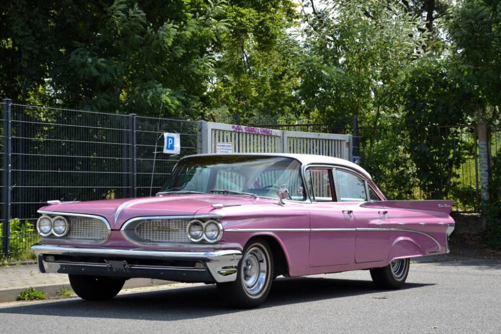 Dieser Pontiac Star Chief aus dem Baujahr 1959 ist ca. um 2000 nach Deutschland gekommen. 2006 gab es den letzten Haltwechsel. Seit 18 Jahren ist der Pontiac nun in 2. Deutscher Hand. Der Star Chief wurde 2006 durch die DEKRA abgenommen und das H-Kennzeichen wurde genehmigt. (Unterlagen vorhanden) In dieser Zeit wurde das Fahrzeug einmal komplett neu lackiert. Dabei wurden ebenfalls sämtliche Dichtungen um die Fensterrahmen erneuert. Auch die Frontscheibe wurde erneuert. Passend zur Lackierung ist auch der Innenraum vollständig erneurt worden. Polster, Teppich und Himmel wurden erneuert. Den Himmel ziert dabei ein aufwendiges Sternenmuster. Motor und Vergaser sind vollständig original und laufen tadellos. Bei Verkauf bekommt der Star Chief noch eine große Inspektion inkl. Durchsicht.