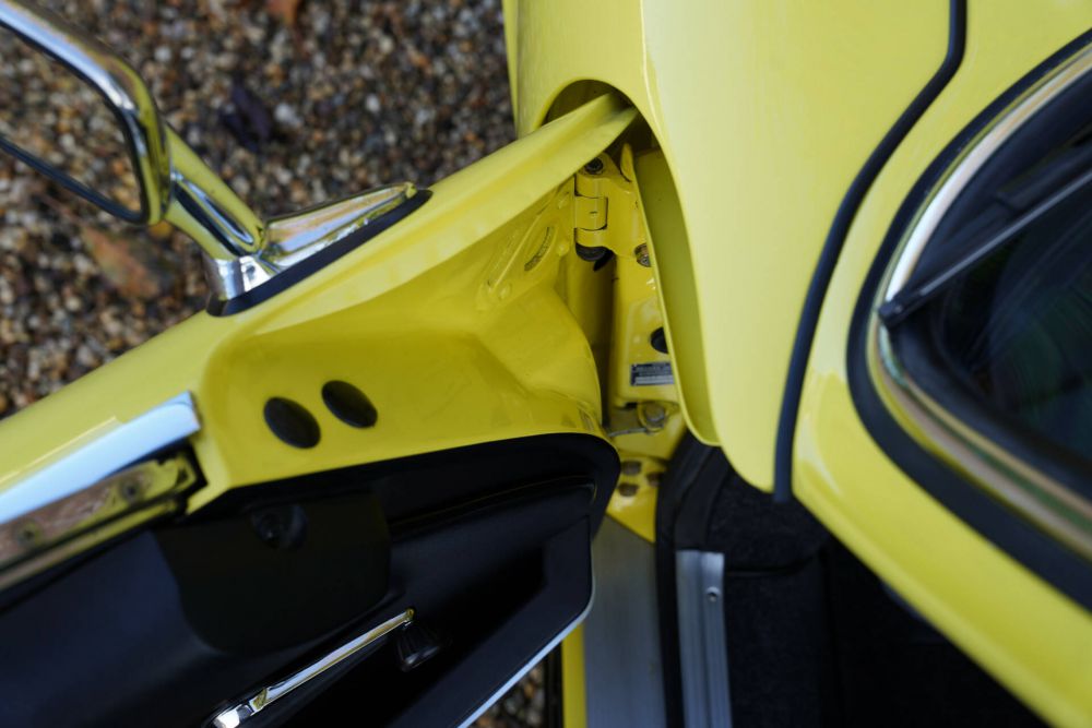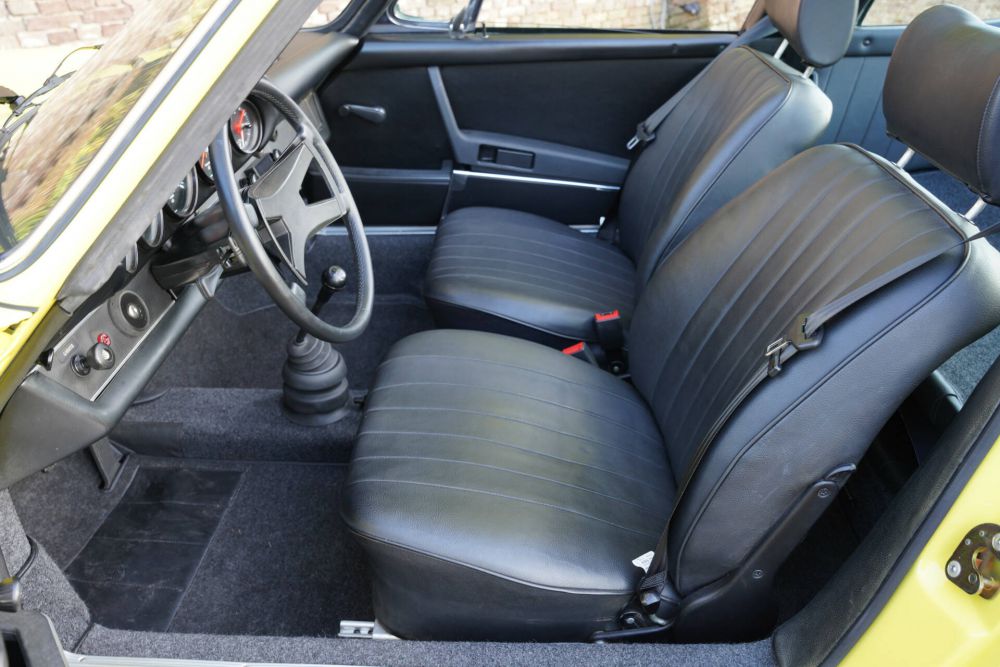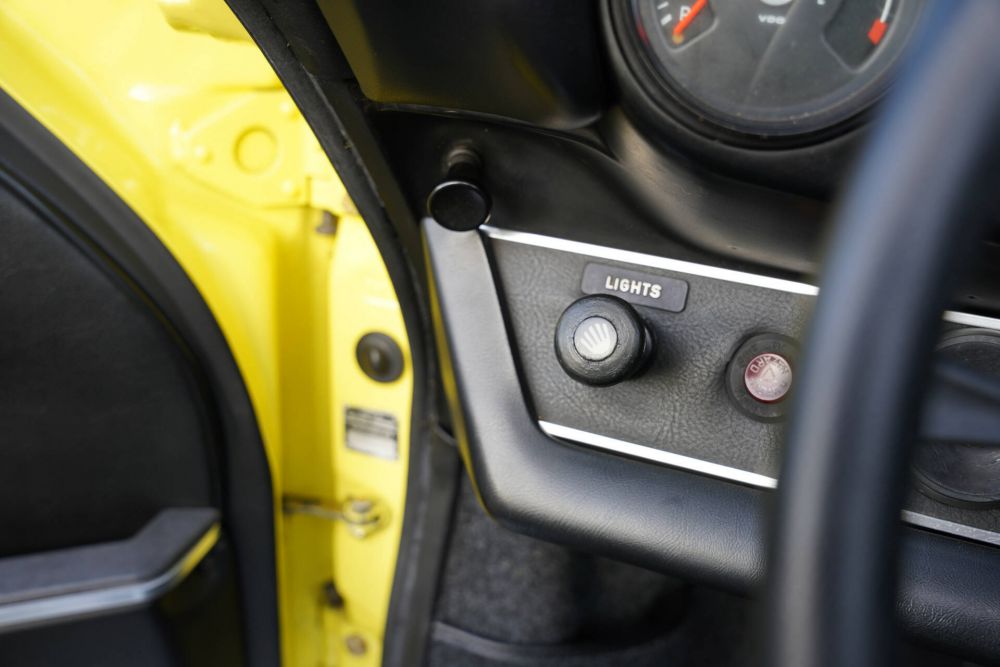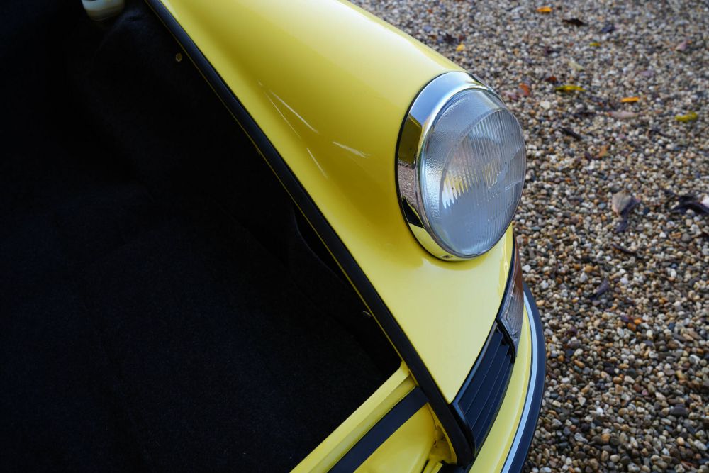 This Porsche 911 T Targa is finished in the iconic Hellgelb, a color that enhances the car's sporty yet elegant appearance. The deep, well-maintained paintwork clearly demonstrates the quality of the restoration, and the color scheme emphasizes the era of this 911 T. The black interior exudes class and offers the comfort and style that belong to a classic Porsche. Every detail of this car has been addressed with care, making the whole experience feel like stepping into a Porsche dealership in the 1970s.