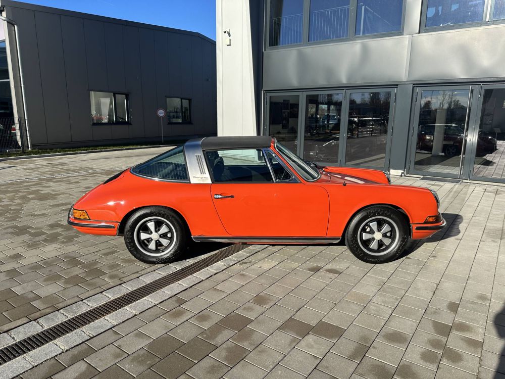 This Porsche 911 T Targa was purchased on October 11, 1972 in Heidelberg by an employee of the US military and brought to Texas, USA towards the end of 1973. According to the original service booklet, the first service was carried out there. The Porsche 911 Targa changed hands three times in the USA before returning to Germany. The vehicle, finished in orange with a black interior, is technically and visually in very good condition and has matching numbers and matching colors. There are also various documents (title, operating instructions) and numerous invoices for restoration and repair work. In 2020, the classic was restored and repainted in the color it was delivered in. The last customer service including oil change was carried out 2023. A valuation report from 2023 (grade 2+) is also available.