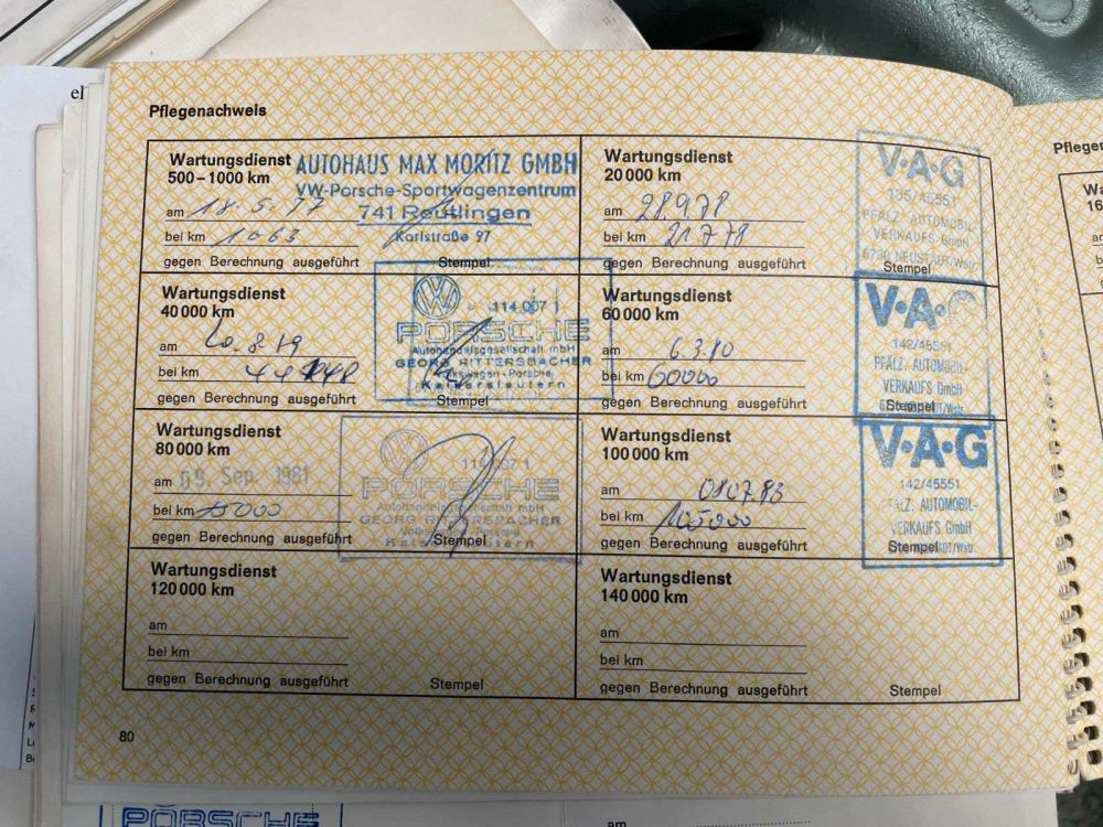 in 09.1980 bei Tachostand 71759km orig. Austausch Aggregat 930-02 durch Porsche Ritterberger in Kaiserslautern verbaut, daher: