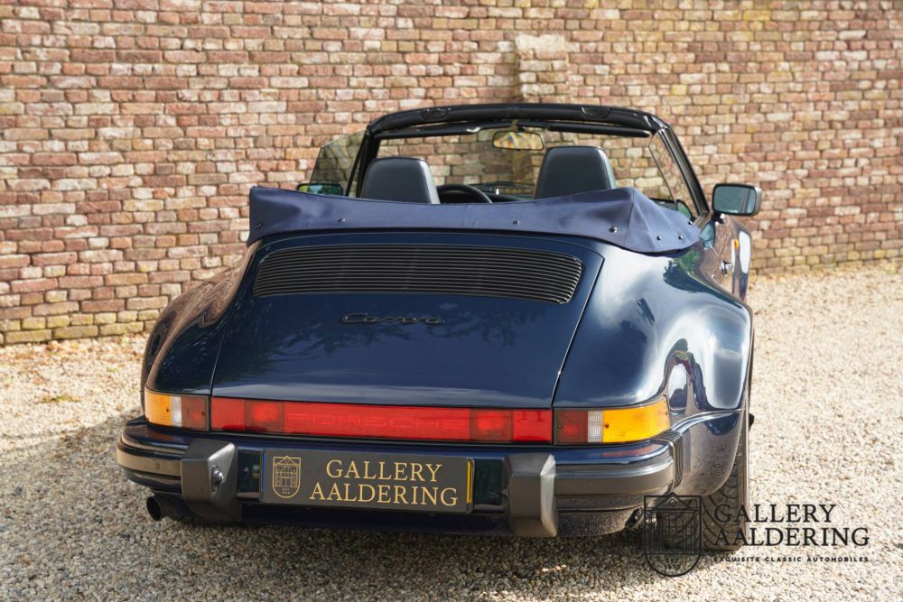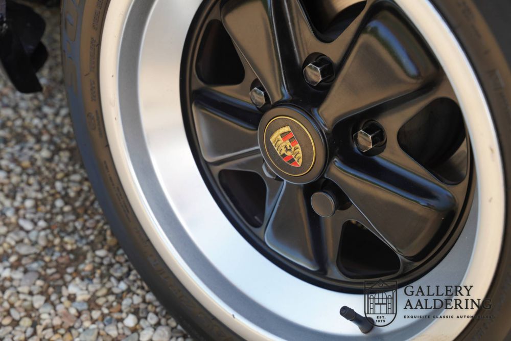 Okay, we've covered the specifications, but there's more to mention: the condition of the 911 is exceptional. With only 67,809 kilometres on the clock, this WTL is in phenomenal shape. The leather upholstery appears untouched and beautifully supple. Its colour is deep and consistent throughout. The steering wheel and gear stick of an older Porsche are often the areas that reveal the true freshness of the car. As you can see in the photos, they have barely been affected by use or time. Do you notice the modern radio? You might find it a pleasant addition, but the original radio is present with the car if you prefer it to be more fitting with the overall original condition. The convertible top is as beautiful as the interior, with the fabric fitting tightly and showing no signs of discolouration, just like the rest of the interior.
