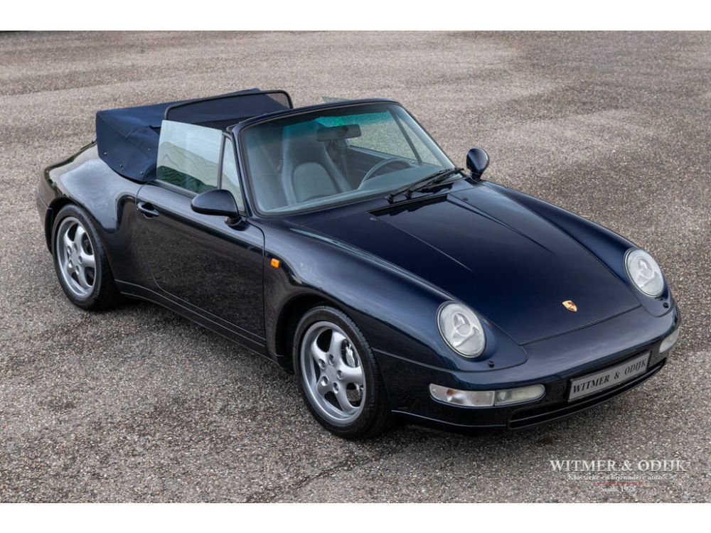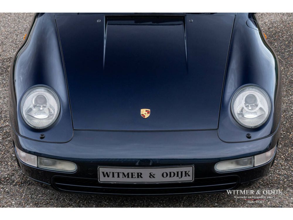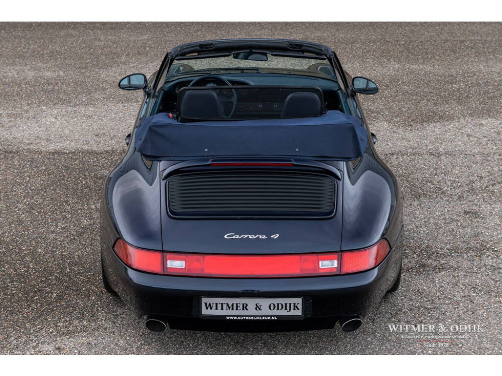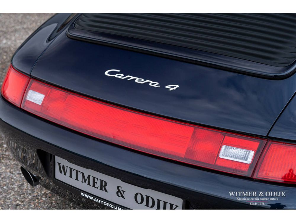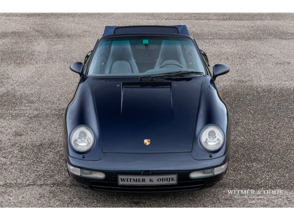 De laatste luchtgekoelde 911 is uiteraard de meest doorontwikkelde en comfortabele, geïntroduceerd in augustus 1993. Er is dus maar liefst dertig jaar gewerkt aan de perfectionering van de originele 911. Uiteindelijk nam, gezien het voortdurend toenemende motorvermogen, de vraag naar een veiligere vierwielaangedreven versie toe, zaken als traction control waren destijds nog niet aan Porsche besteedt.Zowel de 964 als de laatste luchtgekoelde, de 993, waren leverbaar met vierwielaandrijving waarbij afhankelijk van de 'slip' het vermogen verdeeld werd tussen de aandrijving voor en achter. Het soms plotseling uitbreken van de achterkant was hiermee verleden tijd. Gezien de niet geringe nieuwprijs werden er slechts 4400 exemplaren verkocht, tegenwoordig de productie van de VW Golf in één week.Zeldzaamheid en natuurlijk kwaliteit zijn belangrijke waardebepalende factoren bij klassieke en youngtimer auto's. Het hier aangeboden exemplaar werd door een Nederlandse klant van ons die lang in Zwitserland werkte een aantal jaren terug meegenomen naar Nederland, onderhoud tot dan toe verzorgd door Zwitsers zoals alleen zij dat kunnen. Door veranderende privé omstandigheden wilde onze klant de auto nu verkopen na een aantal jaren gebruik in Nederland. De auto was echter toe aan groot onderhoud en bijvoorbeeld het cabriodak was aan vervanging toe. Zo werd de auto weer up-to-date gemaakt door vervanging van schokdempers, banden, accu, div. belangrijke pakkingen en minder belangrijke zaken als bijv. krakende luidsprekers. Het cabriodak is zowel aan de buiten- en binnenzijde vernieuwd, vakwerk!Gezien de lage kilometerstand en de huidige technische staat van de auto is ze klaar voor vele zorgeloze kilometers. Uiteraard betreft het hier een originele, schadevrije en optisch foutloze 993 Cabriolet. In het fraaie Midnight Blue Metallic met donkerblauwe kap een stijlvolle verschijning. Voorzien van een originele Porsche Classic radio met navigatie, donkerblauwe afdekhoes voor het cabriodak en windscherm. Onderhoudshistorie alsmede facturen aanwezig. Zie onze website voor meer dan 100 foto's www.witmerodijk.nl of u gebruikt de volgende link, https://witmerodijk.nl/te-koop/porsche-993-carrera-4-cabriolet/2261