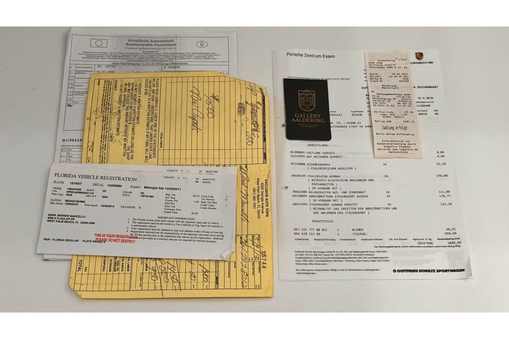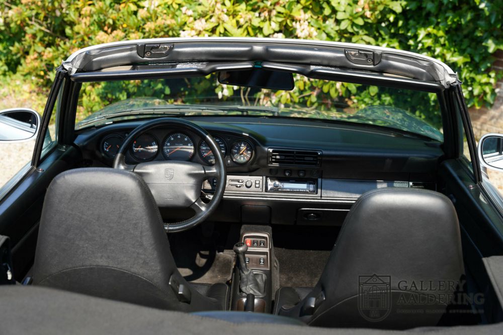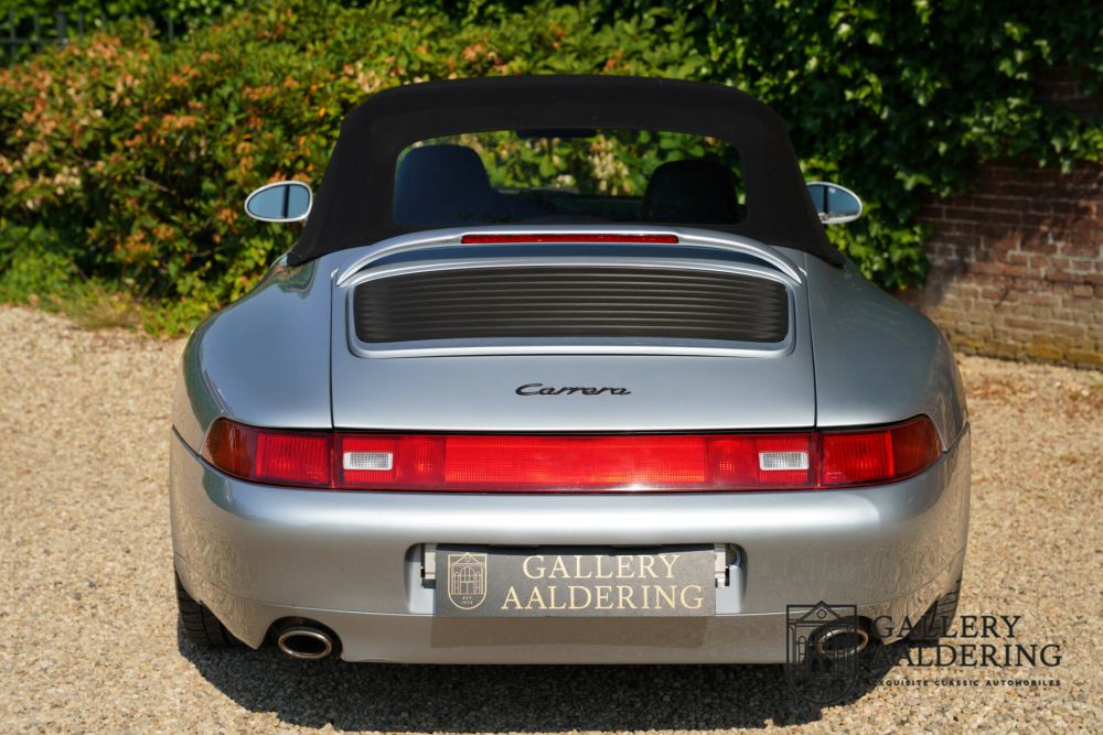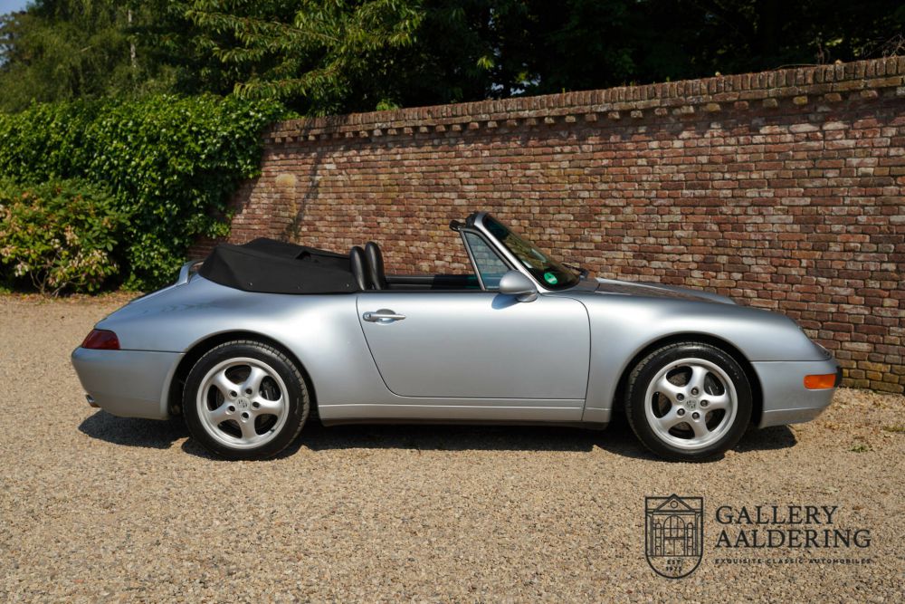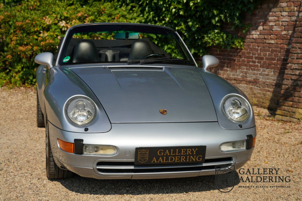 It is 1993 when Porsche presents the new 911 at the IAA Frankfurt Motor Show, internally referred to as 993. For the first time, major changes have been made to the body, with the headlights lying flatter and more integrated into the design. The rear is also rounder and smoother. What the world does not yet know is that this series will enter the books as the last air-cooled 911. This makes it not only one of the most beautiful 911s but also the last chapter of an icon.The 993 is quite a step up from the 964 in every way. Options are more modern and with a new alloy subframe and new rear suspension better handling than ever. The interior gets only marginal innovations, fortunately. The characteristic five meters are therefore retained in the classic way. The engine is an evolution of the 3.6 that could already be found in the predecessor.As with its predecessor, you can choose a manual variant or the now well-known Tiptronic transmission. An automatic transmission that can also be operated manually with touch keys (or the gear lever).However, the car we offer here is the version where you have full control over the gear change, this 993 has the manual gearbox. Executed in Arctic Silver with black leather, which means that we are dealing with one of the most popular colour combinations. Perhaps not exactly the most exciting, but one with which you can arrive anywhere.The body of the convertible is neat, with some small signs of wear here and there. The fits are neat, the paintwork has a single imperfection. Even after almost 30 years, the 993 still looks like a modern car, great design work by Porsche.Once behind the wheel, it's fun all the way through. In front of you the characteristic clock shop of a classic 911: five meters next to each other with, of course, the tachometer centrally present. The steering wheel is comfortable to hold, as is the relatively low-positioned gear knob. Furthermore, the interior is fairly sober, as you would expect from a Porsche 911 from the 1980s and 1990s. And all this can be observed from great-fitting sports seats with very good lateral support.The powerful 3.6 is good for 272 hp, more than enough to be labelled as a real sports car. With the hefty load of power, the butt of the 993 pushes down on the throttle to see the nose rocket towards the horizon. The technology is in a very healthy condition, the chassis and the brakes feel perfectly healthy.You sometimes hear people say: 'My mind says this, but my feeling says that.' How nice it is to be able to say that feeling and reason can rarely agree so wholeheartedly when it comes to a Porsche 993: do it!Gallery Aaldering is Europe’s leading Classic Cars specialist since 1975! Always 400 Classic and Sportscars in stock, please visit www.gallery-aaldering.com for the current stock list (all offered cars are available in our showroom) and further information. We are located near the German border, 95 km from Düsseldorf and 90 km from Amsterdam. So easy traveling by plane, train, taxi and car. Transport and worldwide shipping can be arranged. No duties/import costs within Europe. We buy, sell and provide consignment sales (selling on behalf of the owner). We can arrange/provide registration/papers for our German (H-Kennzeichen, TÜV, Fahrzeugbrief, Wertgutachten usw.) and Benelux customers. Gallery Aaldering, Arnhemsestraat 47, 6971 AP Brummen, The Netherlands. Tel: 0031-575-564055. Quality, experience and transparency is what sets us apart. We look forward to welcoming you in our showroom