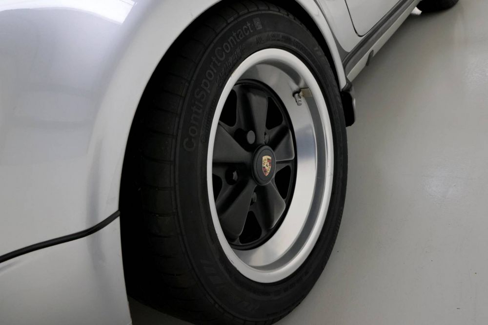 Available as a narrow or Turbo look wide body, the 2-seat Speedster is recognised principally by its unique aluminium framed cut-down, raked-back windscreen and fibreglass double-bubble rear tonneau cover. The aggressive look of the wide body versions was completed with 16-inch Fuchs alloy wheels taken over from the 930 Turbo.