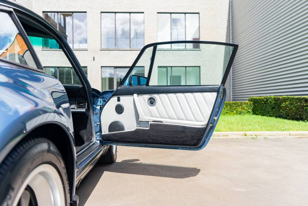 This handsome 930 was completed at the Zuffenhausen factory in 1987 and delivered to its first owner in California. The car was chosen in the rare - and beautiful! - Venetian Blue Metallic over Black/imperial grey leather interior. Next to the standard equipment including headlamp washers, rear wiper, tinted glass, automatic climate control and electric seats the car was fitted with some nice extras. These included the limited slip differential, luxury velours trunk carpetting and a sunroof!