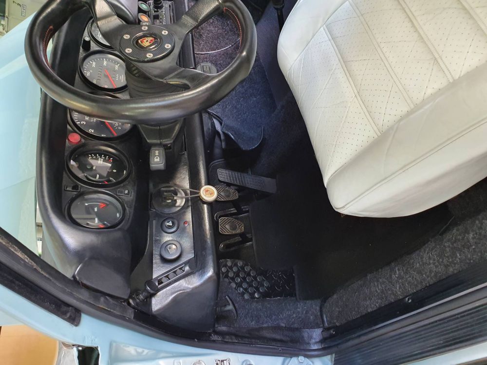 DAS AUTO, SEHR SORGFÄLTIG IN JEDEM DETAIL, WURDE IN EINEM WUNDERSCHÖNEN HELLBLAUEN HIMMELBLAU (ORIGINAL PORSCHE VON 1978) NEU LACKIERT, UND DIE INNENRÄUME WURDEN VOLLSTÄNDIG VON EINEM LEDERKÜNSTLER IN EINER EISWEIßEN FARBE HERGESTELLT,