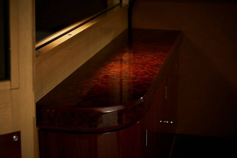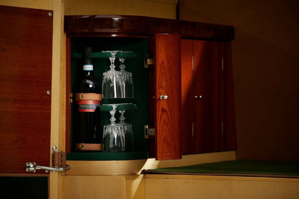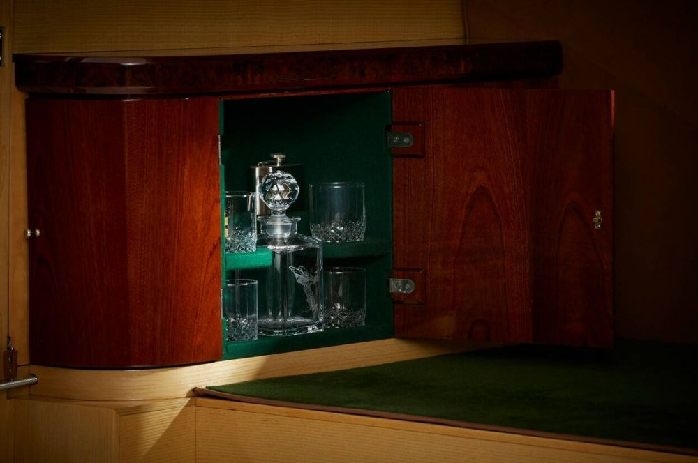 evel in a fully reimagined interior adorned with new walnut inlays and luxurious leather seating, complete with custom storage solutions for hunting gear and a sophisticated drinks cabinet.
