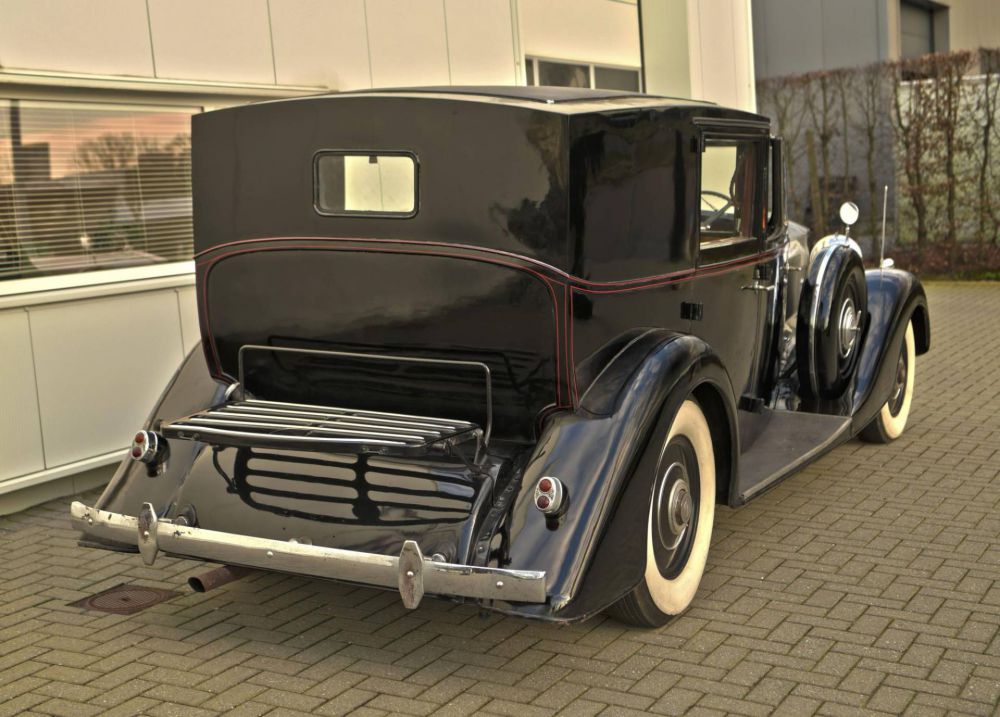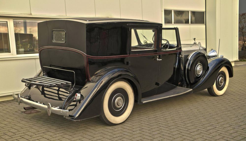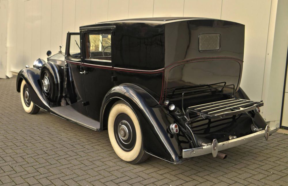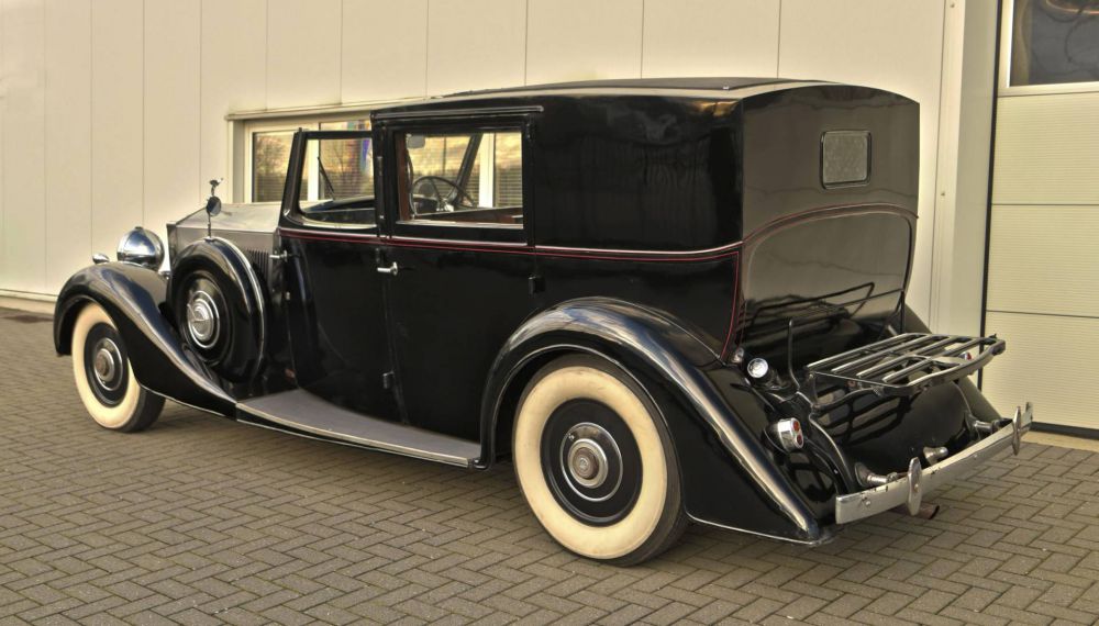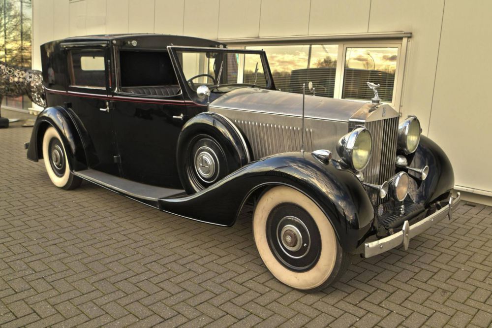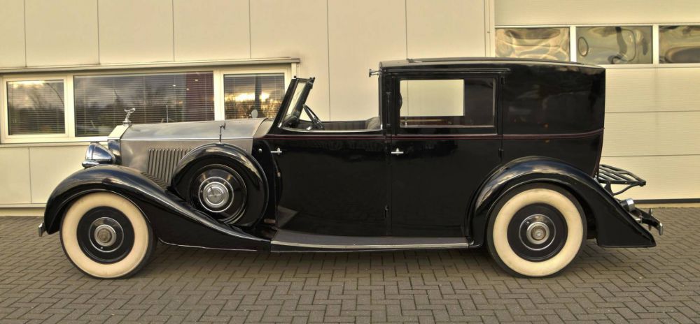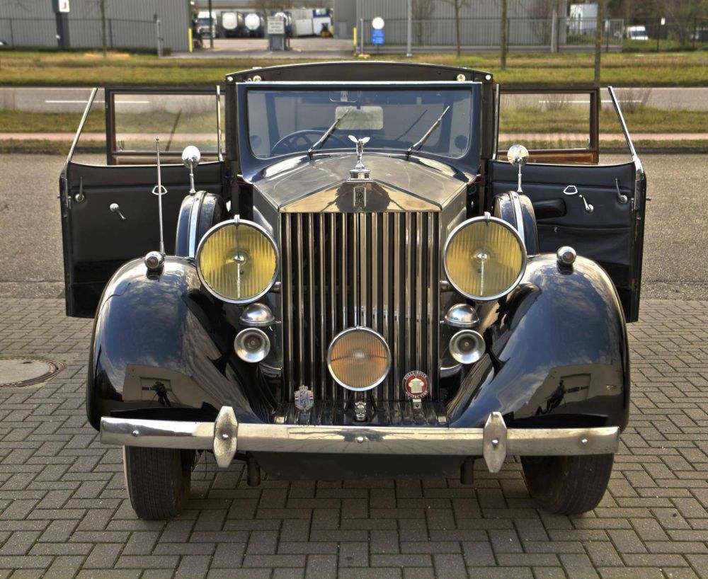 1938 Rolls Royce Phantom 3 Sedanca by Schutter & Van Bakel. Chassis Number: 3-DL-130 Registration Number: UK Applied for. A very unusual Rolls Royce Phantom 3 with a Dutch body by Schutter & Van Bakel of Amsterdam who had also previously bodied a Phantom 2 Continental along with assorted Alfa Romeo's & Bugattis. The coachwork takes the form of a very elegant razor edged brougham which would not look out of place on a 1920's car. Originally the car was ordered for Dr Fritz Mannheimer, Hobbemastraat 20, Amsterdam, Netherlands: 1890 – 9 August 1939 Born in Germany and a banker in the Netherlands. Noted art collector. The second owner was Willem J. R. Dreesmann (1885-1954) from Amsterdam, once Chairman of Vroom & Dreesmann N.V., the largest retail store chain of the Netherlands and one of the larger store chains in the world once. A portrait of him is found at the end of our photo gallery. His name is recognizable on the A.N.W.B. plate (Koninklijke Nederlandse Toeristenbond) on the car. It was exported to the USA & later was repatriated by noted dealer the late Charles Howard. This is a car that has done very few miles & is in impeccable condiiton underneath. The engine runs silently & is smooth & powerful. The odomoeter shows a recorded 68,000 miles which we would supect to be correct given the complete absence of wear to the pedals & taut tight play free feel to the steering. We are currently in the process of giving the car a major service & UK registering it. It was previously dutch registered with the plate HZ30869 Exterior paintwork is black & in generally very good order. The bonnet is of polished aluminium to the tops & sides. A red hand painted coachline accentuates the black body work. A new sedanca soft top covering with header rail & snap on fasteners is currently being fabricated for the car. To the front of the car is non original black leather in very very good condition. A full set of original small tools is found under the passengers front seat in its appointed place. To the back is plush dark blue velour original to the car along with dark blue headlining. Maroon privacy blinds are found over the side & rear widows. Two occasional seats fold out of the bulkhead making this car a true 7 seat vehicle. Oil pressure is good & more importantly the car runs cool. with no overheating tendencies. The gear box is seamless & a pleasure to use with butter smooth synchromesh on all gears. Make no mistake: This is a grand & opulent car attracting admiring glances wherever it appears. It is being sold freshly serviced & in super running condiiton.