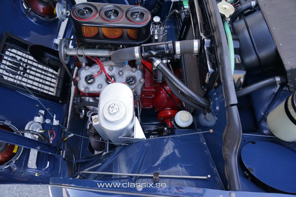 Engine: The original SAAB 96 Sport engine has just been broken in and was completely rebuilt with new pistons and gaskets, delivering 52 wild horsepower. The 4-speed gearbox was also original on the sport model, and SAAB always had the freewheel, so you do not need to use the clutch when you change gears. Another detail that is special for the SAAB Sport is that it has a special tank in the engine compartment for the two-stroke oil, so you never have to think about mixing the gasoline yourself when you fill up the car. The 1962 SAAB Sport also featured disc brakes up front.