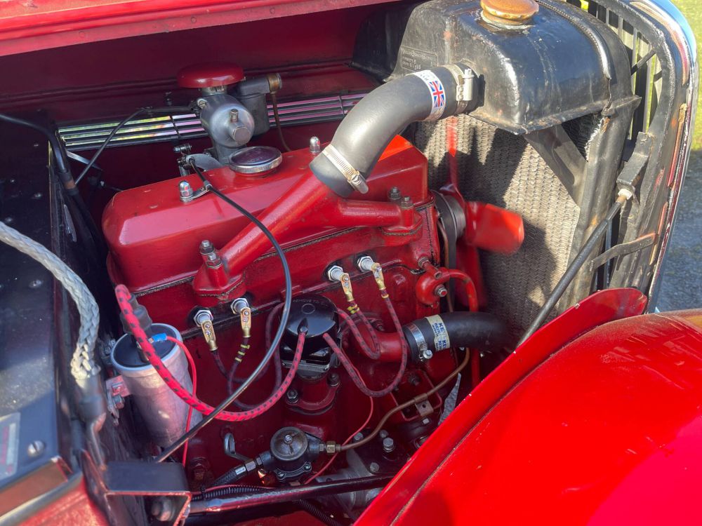 The body with its bright red paintwork is in very good order. All chromework and badges are present, correct (no bumpers were fitted to the initial 1939 models) and in very good condition. Supplied with hood, sidescreens and tonneau cover – again, all in very good condition.