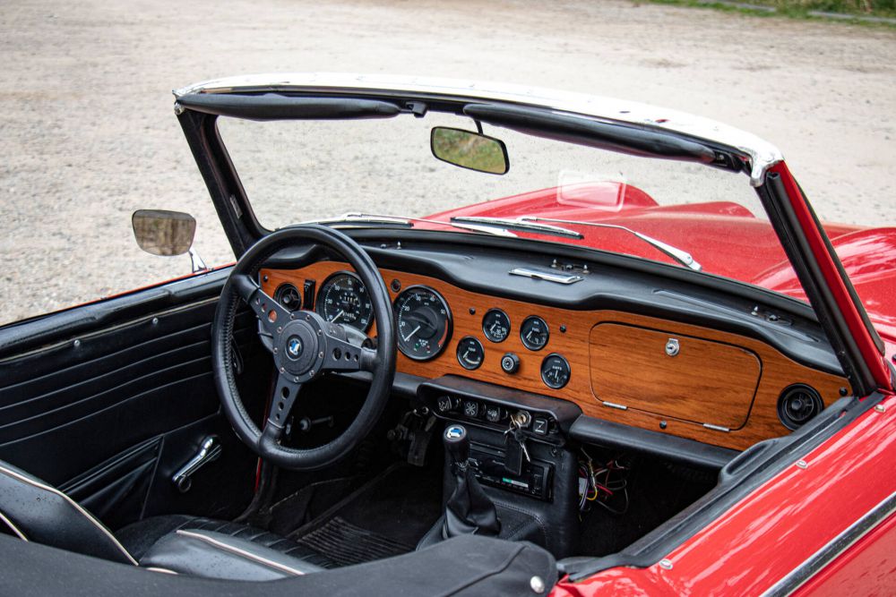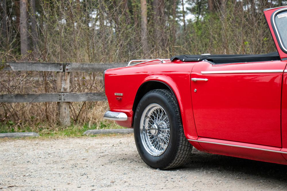 Our TR250 Overdrive is a stunning example, finished in Signal Red. It is more than ready for many more fun miles with the amount of work that has been done to it over the years. The car underwent a full restoration years ago, meaning that the bodywork and chassis are in excellent shape. The interior is also in excellent condition and has been fitted with a lovely leather Moto Lita steering wheel.