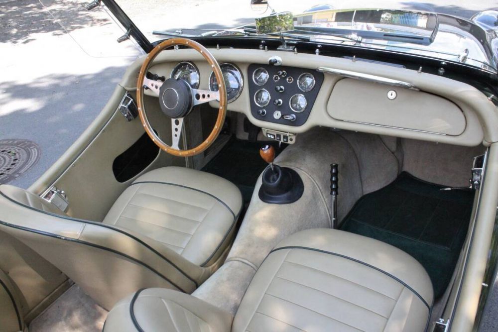 Das sehr dunkle British Racing Green wirkt im Zusammenhang mit der hellen Innenausstattung und dem hellen Verdeck.