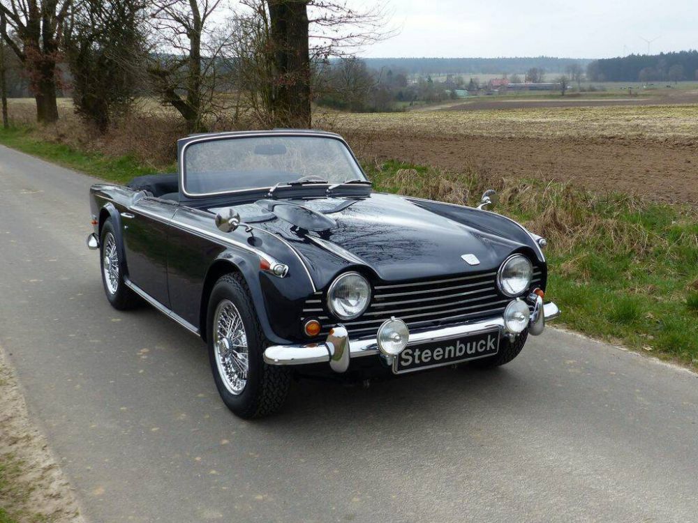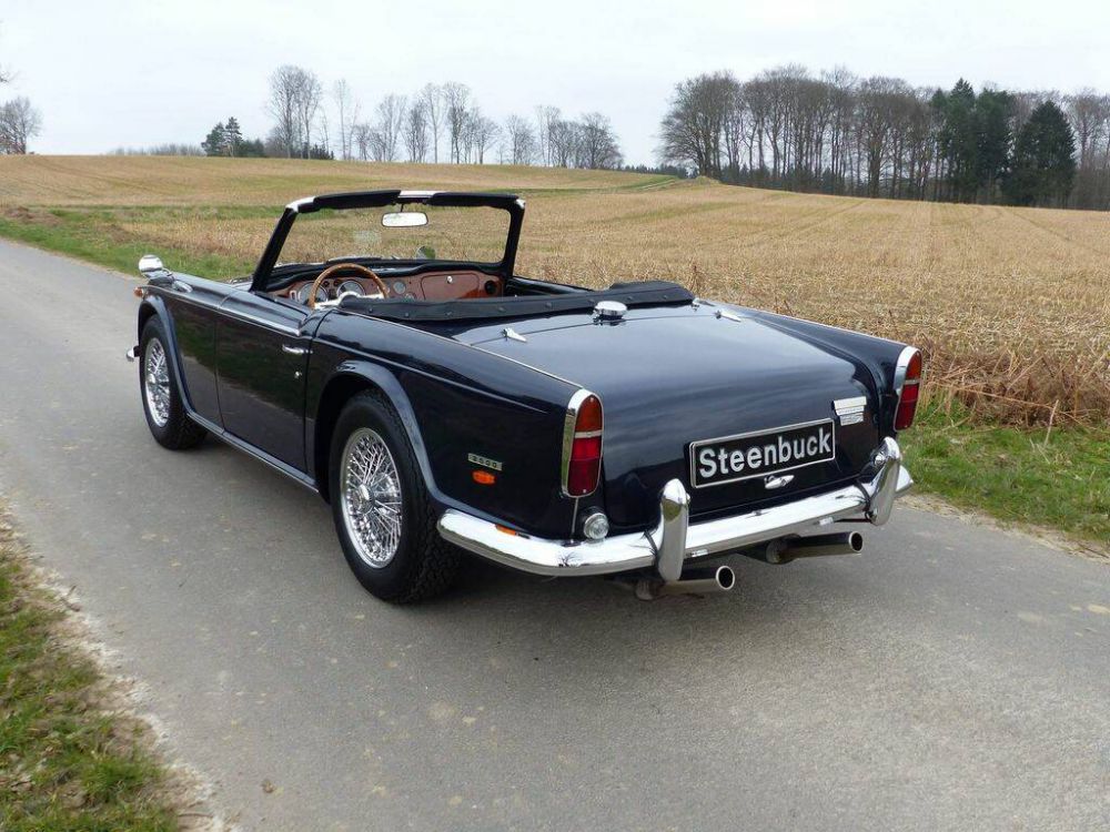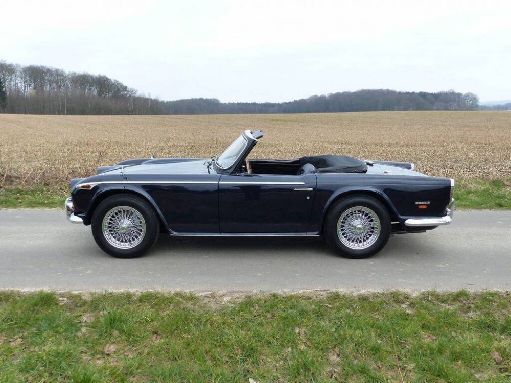 The Triumph Motor Company went bankrupt in 1939. In 1944, the Standard Motor Company took over the rights to the name and, from 1953, built on the sporting successes of the pre-war period with the TR model series. It began with the TR 2 and the TR 3 and TR 4 models led to the TR 5 with the six-cylinder engine. The TR 5 Pi was the first British production car to be supplied with a Lucas fuel injection system. For export to the USA, there was the TR 250 with the significantly weaker carburettor engine. This makes the TR 5 Pi the sought-after variant, of which only 2,947 were built. Our Triumph TR 5 Pi Roadster is a left-hand drive model. The dark blue colour scheme suits it beautifully. The classic car was completely restored by a well-known Hamburg-based specialist company. It has been registered in Germany again since 2018. The agile roadster wants to be driven. Treat yourself to this driving pleasure! EXTRAS: car radio, exterior mirror right, overdrive, chromed spoke wheels, stainless exhaust system, wooden steering wheel, hood made by Sonnenland