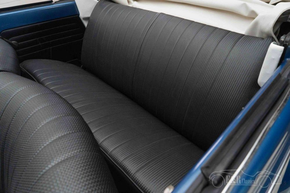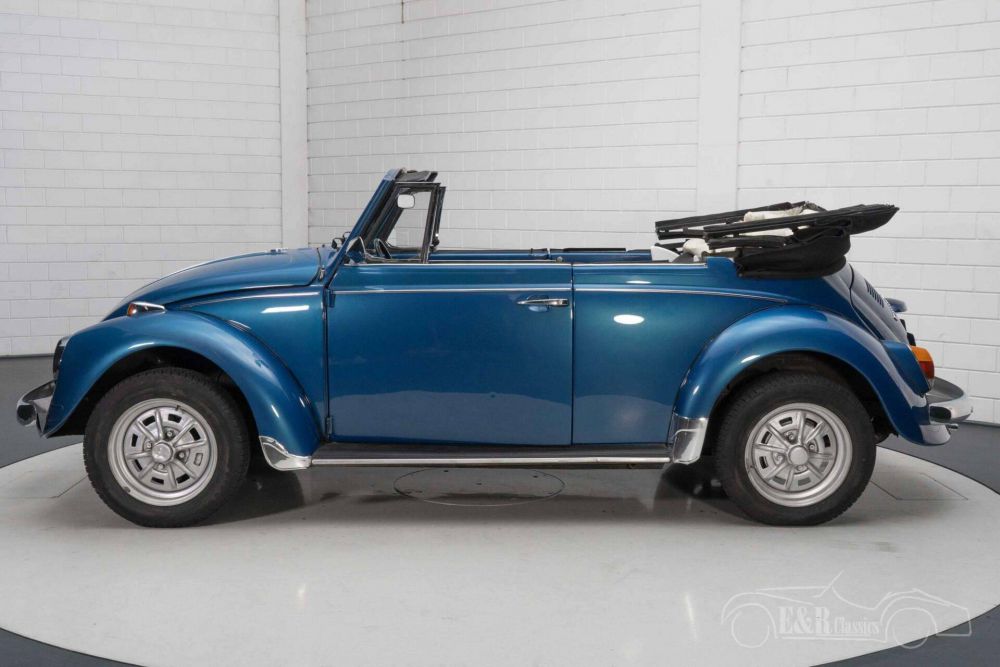 Zoals u op de foto’s kunt zien is deze Kever Cabriolet echt een plaatje om te zien. Hij is uitgevoerd in een prachtige donkerblauwe metallic kleur die er een echte eyecatcher van maakt. Het chroomwerk verkeert in een zeer goede staat en combineert erg mooi met het metallic lakwerk. Het interieur is uitgerust met zwarte stoelen en een mooi, klassiek dashboard.