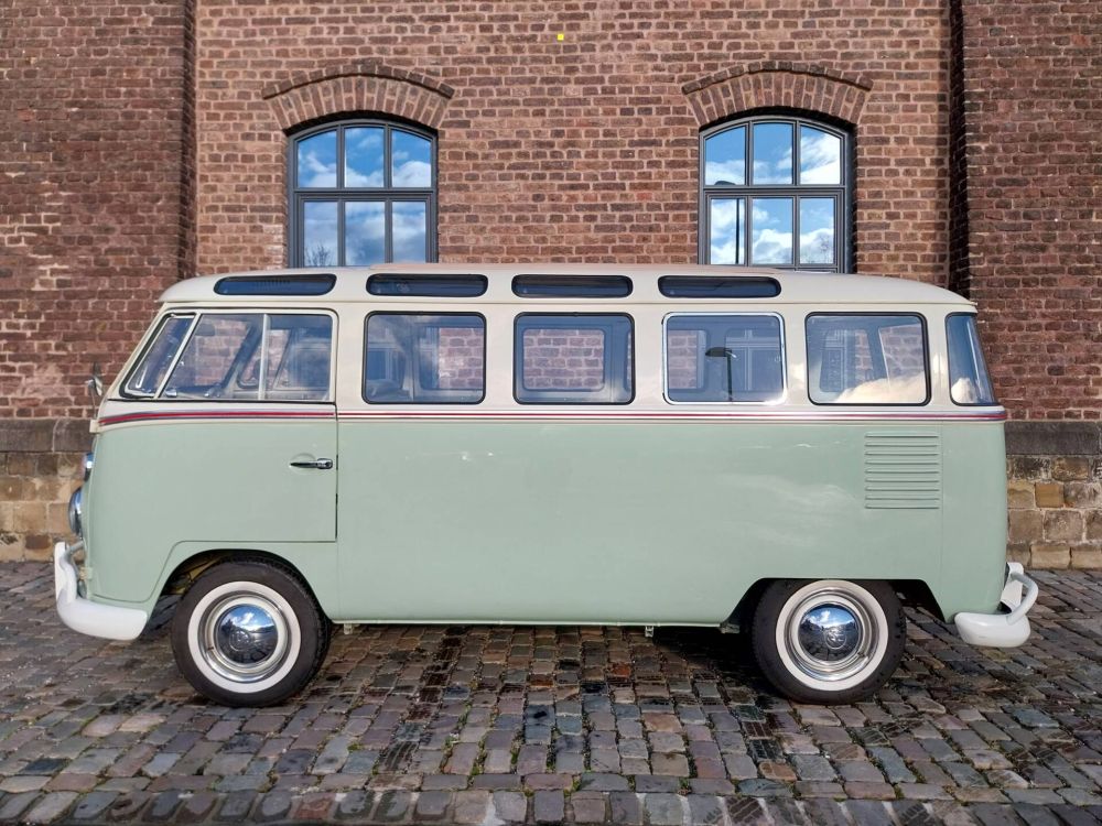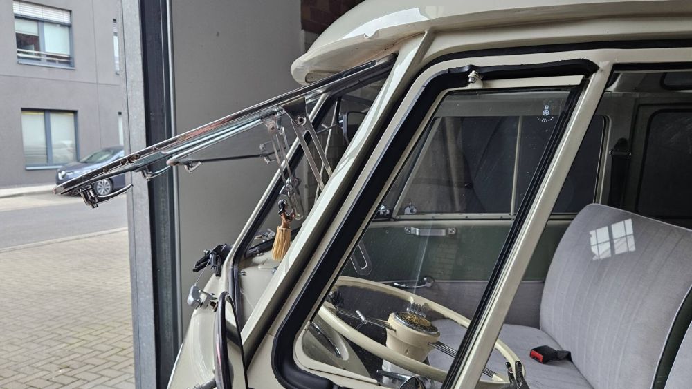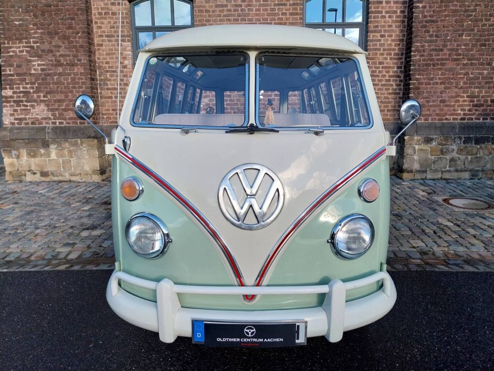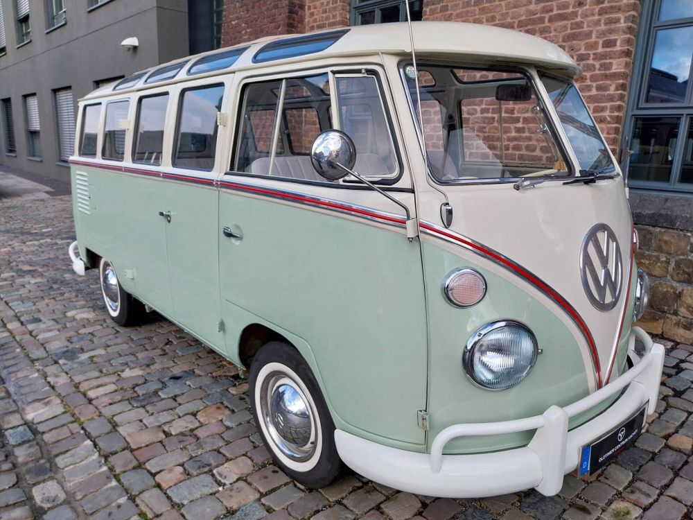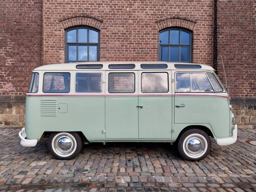 This sought-after collector's item boasts 23 windows that allow all-round visibility, as well as its harmonious two-tone paintwork and the safari-style windshield that can be fully opened. The interior is very spacious with three rows of seats and nine seats.