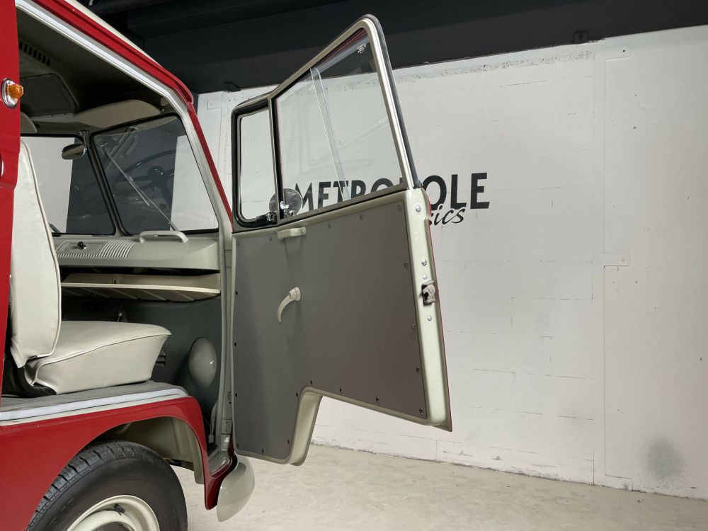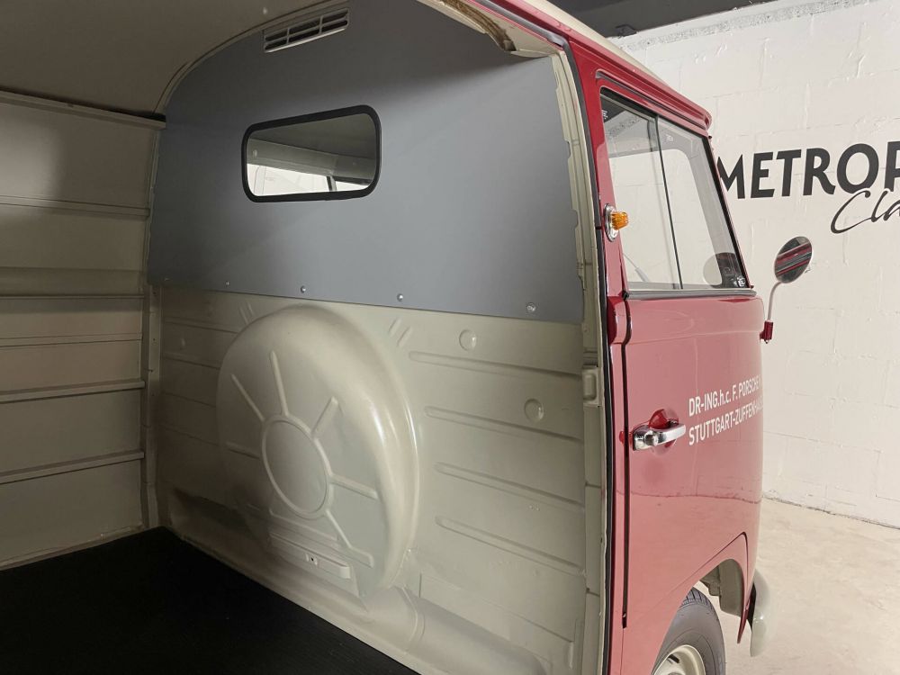 This van here has been completely restored to competition level. It also drives perfectly. Made in red with a beige interior. We have decorated the bus with the Porsche Renndienst logos. A beautiful bus for enthusiasts.